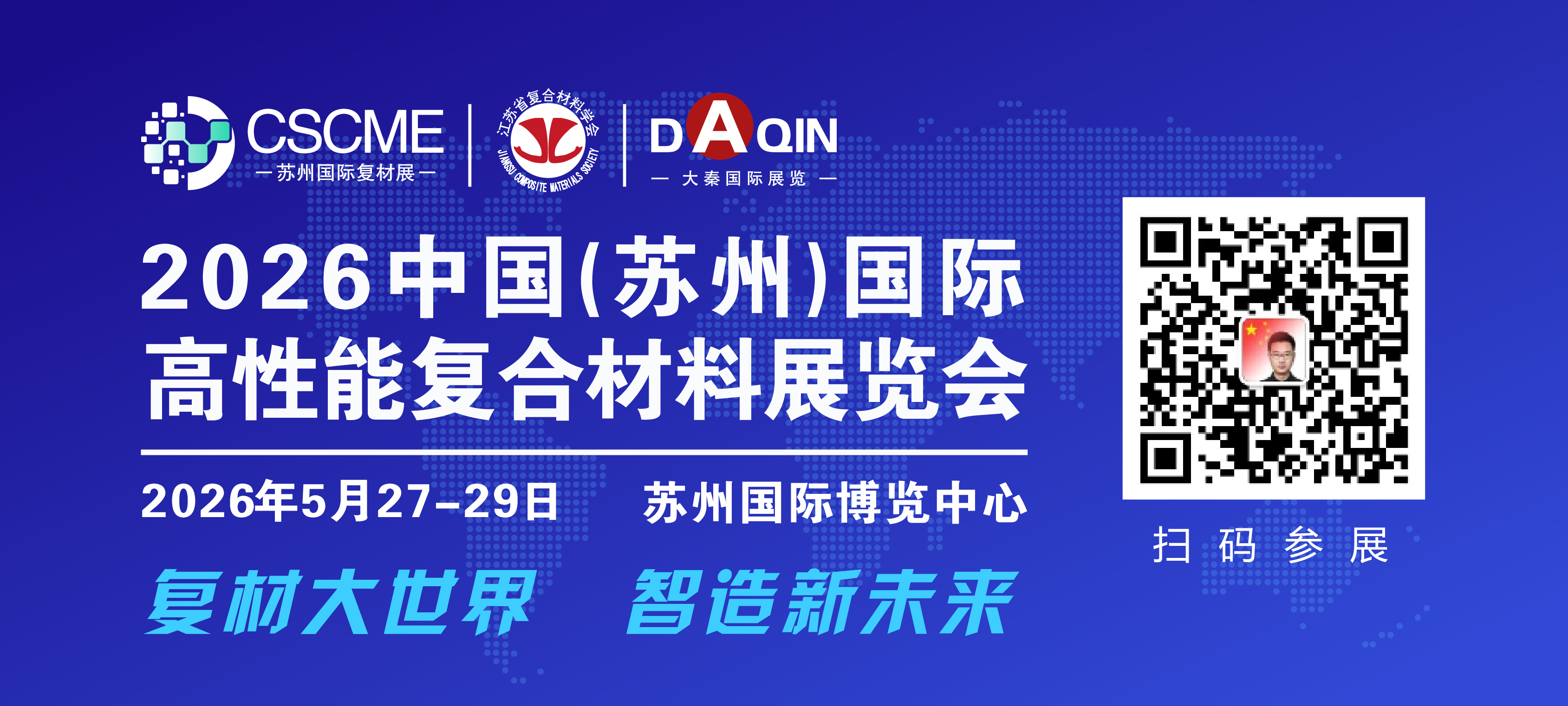 由江苏省复合材料学会主办、江苏大秦国际展览有限公司负责承办的“2026中国(苏州)国际高性能复合材料展览会”( 简称 : CSCME 苏州复材展) ,将于 2026年 5 月27-29 日在苏州国际博览中心隆重举办!