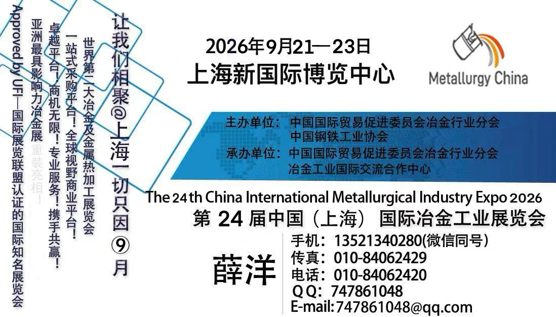让我们相聚@上海,一切只因9月盛装开幕的 Metallurgy China 2026!亚洲 影响力冶金展重装亮相上海!一站式采购平台!全球视野商业平台! 卓越平台!商机无限!专业服务!携手共赢!